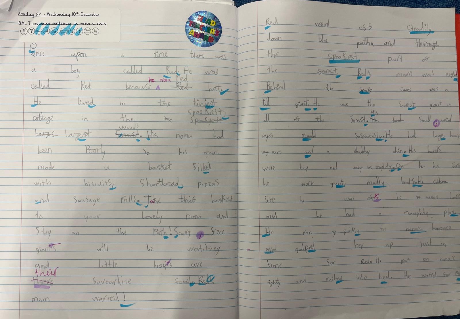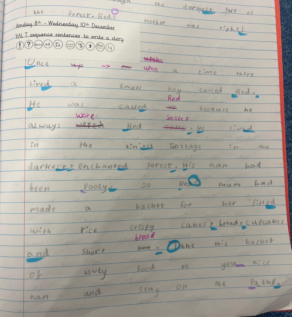 Through modelled texts, children are shown the grammar to be taught in context. Children will identify the grammar, before explicit grammar lessons teach the skill. Children will apply this knowledge through ‘short burst writing'. Dictation sentences provide children the opportunity to practise the grammar skills in a variety of different sentences.